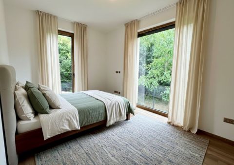 A 137 nm-es, egyszintes, élhető méretű ingatlanban tágas, nagy belmagassággal rendelkező amerikai-nappali és 3 háló került kialakításra. Fentieken kívül 2 fürdőszoba, kamra és háztartási helyiség is helyett kapott udvari beállója és hatalmas terasza mellett.