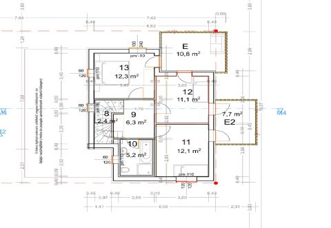 Az emeleten három kényelmes méretű szoba kerül kialakításra, ideális elosztásban családok számára. A modern fürdőszoba WC-vel együtt készül, a szobákban pedig beépített szekrények elhelyezésére is lehetőség nyílik.