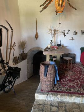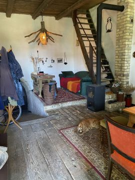 A ház szerkezetileg kiváló állapotú, masszív és stabil. Két szoba, konyha és fürdőszoba található benne, jelenleg is lakott, szerethető, otthonos tér. A tető pala fedésű, amely néhány éve zsindely borítást kapott. Víz és villany bevezetve (16A), a fűtés fával és villannyal megoldott.