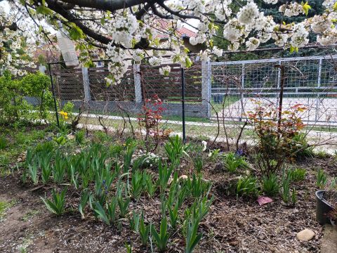 Élő kert: Gazdag növényzet és termő gyümölcsfák biztosítják a nyugalmat és a saját termést.