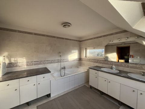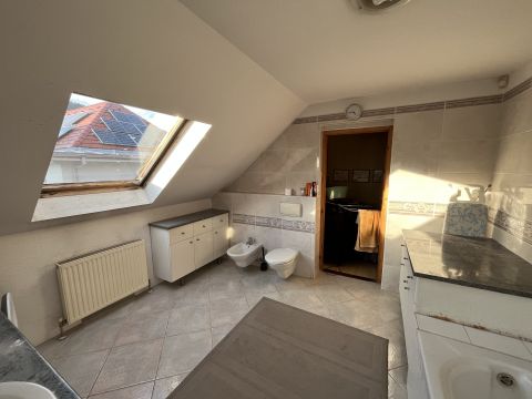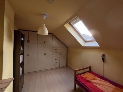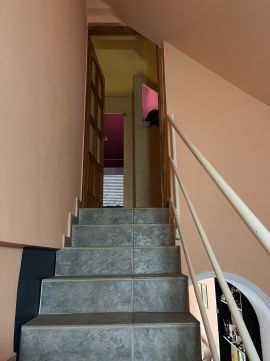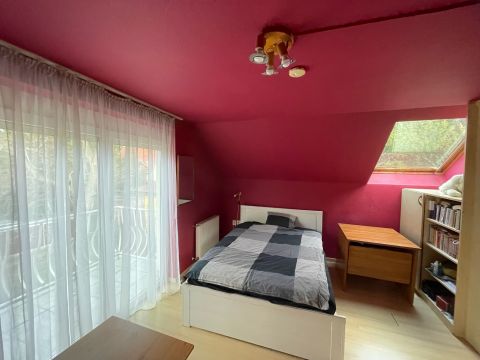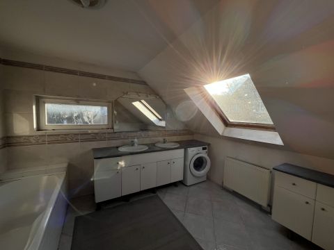 A ház 2000-ben épült, teljes közművel ellátott. A földszinten nappali, konyha, hálószoba, valamint egy kisebb, zuhanyzós fürdőszoba kapott helyet, WC-vel. A tetőtérben további két szoba és egy tágas, káddal felszerelt fürdőszoba található. Az emelethez erkély, a földszinthez pedig terasz kapcsolódik.