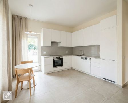 A ház középpontja a rendkívül tágas, 44 nm-es nappali, amihez egy 22 nm-es terasz kapcsolódik. Szintén a földszinten található külön helyiségben a konyha, ami méretének köszönhetően az étkezőt is magában foglalja. Ugyanitt tágas, nagy ablakos fürdőszoba zuhanyfülkével található, a wc külön helyiségben van.