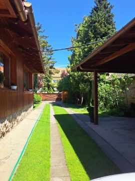 A csendes utcáról érkezvén automata kapun keresztül  három állásos fedett autóbeállóval és  praktikus fedett tárolóval ellátott  tágas  előkert fogad. A ház stabil, 40'es építésű, szigetelt kő alappal,  vastag tégla falakkal, polgári belmagassággal, azóta több felújitáson esett át: cseréptető szigeteléssel, falak hőszigetelése, kivül belül fa burkolatok, 90' fürdőszoba felújitás, burkolatok, fa nyilászárók, hangulatos ácsolt fedett terasz.