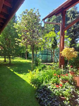 A Belvárosi viszonylatban kivételes méretű kertben gyümölcsfák, fóliasátor veteménnyessel és sok szép virág és szines bokor, mig hátul pincével rendelkező melléképületek találhatók.
