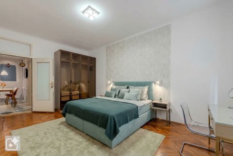Molnár utcában, 1895-ben épült nagyon szép, eklektikus bérház első szintjén kínáljuk eladásra, ezt az összesen 115 nm-es 5 szobás, DUPLAKOMFORTOS, barátságos otthont, a Duna part és a Váci utca között.