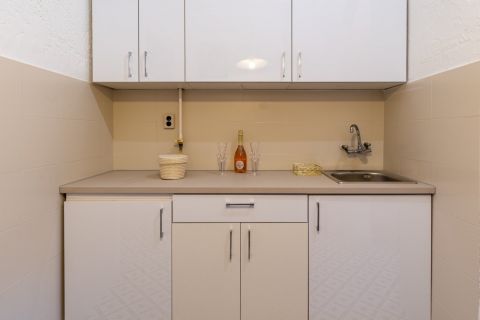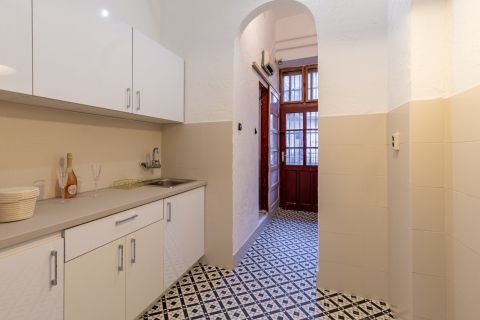 A lakásba újonnan került beépítésre a konyhabútor. Frissen lett festve.