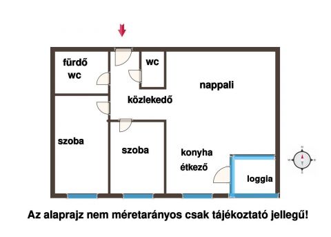 Nappali-konyha + 2 külön nyíló hálószoba