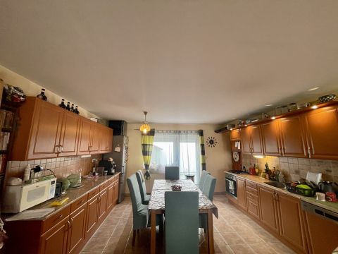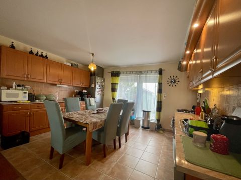 Az alsó szinten előszoba, világos nappali és étkezős konyha található, amely ideális helyszíne családi és baráti összejöveteleknek. Ezen a szinten külön WC és praktikus kamra is helyet kapott.