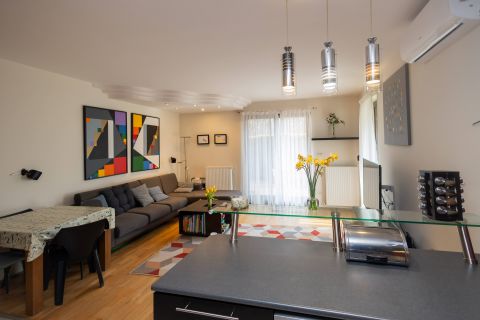 A 2011-ben épült, modern kialakítású ingatlan 67 m²-es, praktikus elrendezésének köszönhetően ideális választás családok vagy párok számára is.