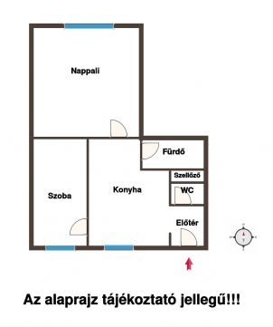 Előszoba, wc, konyha-étkezővel, nappali és egy szoba.