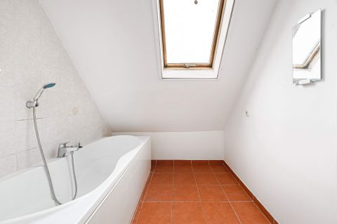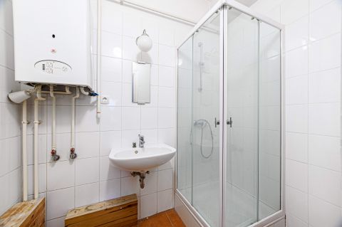 A ház maga távfűtéses, azonban ez a lakás levált és egyedi gáz fűtéses. Netto 60 nm(ez szerepel a tulajdoni lapon is), a valóság azonban 73 nm tekintettel a tetőtéri 1.9 m alatti területekre. Az épületben a tetőszerkezet nemrég lett kicserélve. A ház anyagilag jól áll, a belső udvarban vannak gépkocsi beállók, de ezek várólistásak.