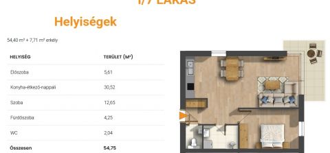 Hatvani kert társasház első emeletén eladó 1/3 számú lakás. A lakás dél-keleti tájolású, 55 nm, + 7,5 nm erkéllyel. A lakásban található konyha étkező ,nappali, egy db szoba és egy fürdőszoba. A lakáshoz tartozó erkély a nappalin keresztül megközelíthető.
