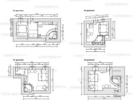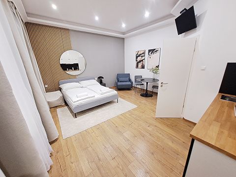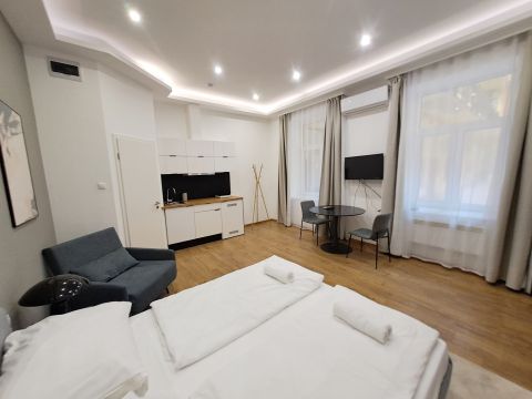 All apartments have their own bathroom, toilet and kitchen, and all are air-conditioned. The windows overlook the inner courtyard.